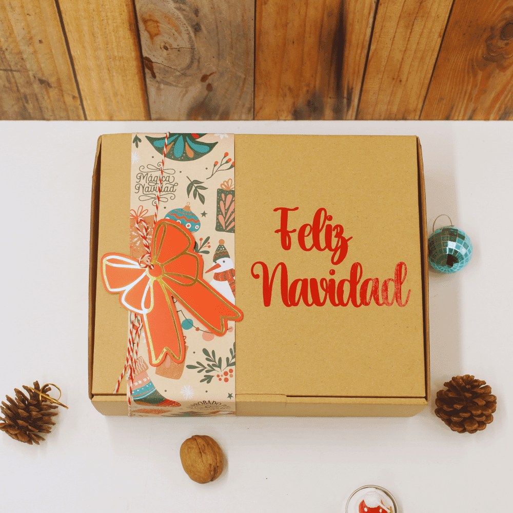 Cajita de cartón ecológico decorada Feliz Navidad
