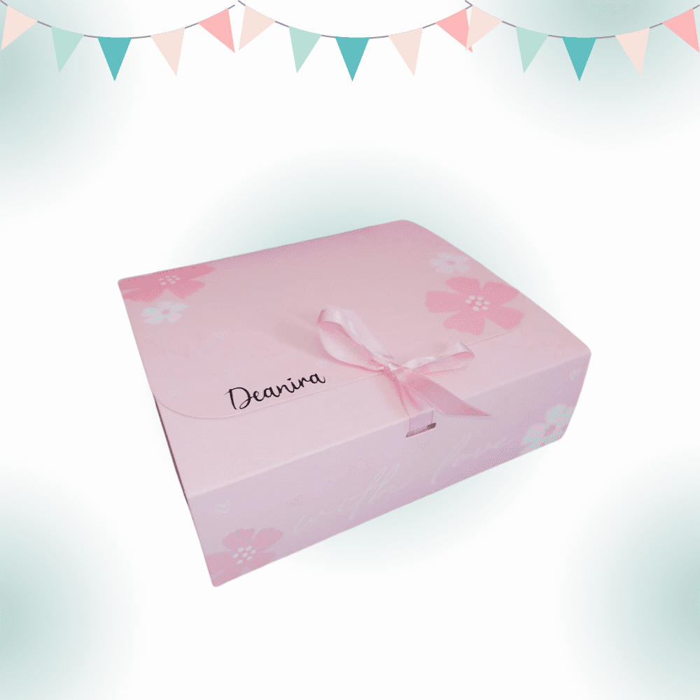 Box cuadrado decorado (personalizado con nombre, disponible en caja rosada)
